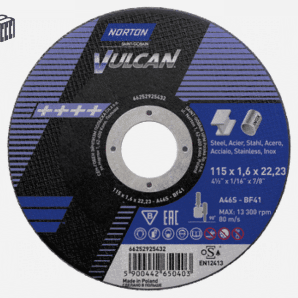 NORTON Vulcan+ / X‑Treme Life Cutting Disc 115 × 1.6 × 22.23 mm (T41, A46V)