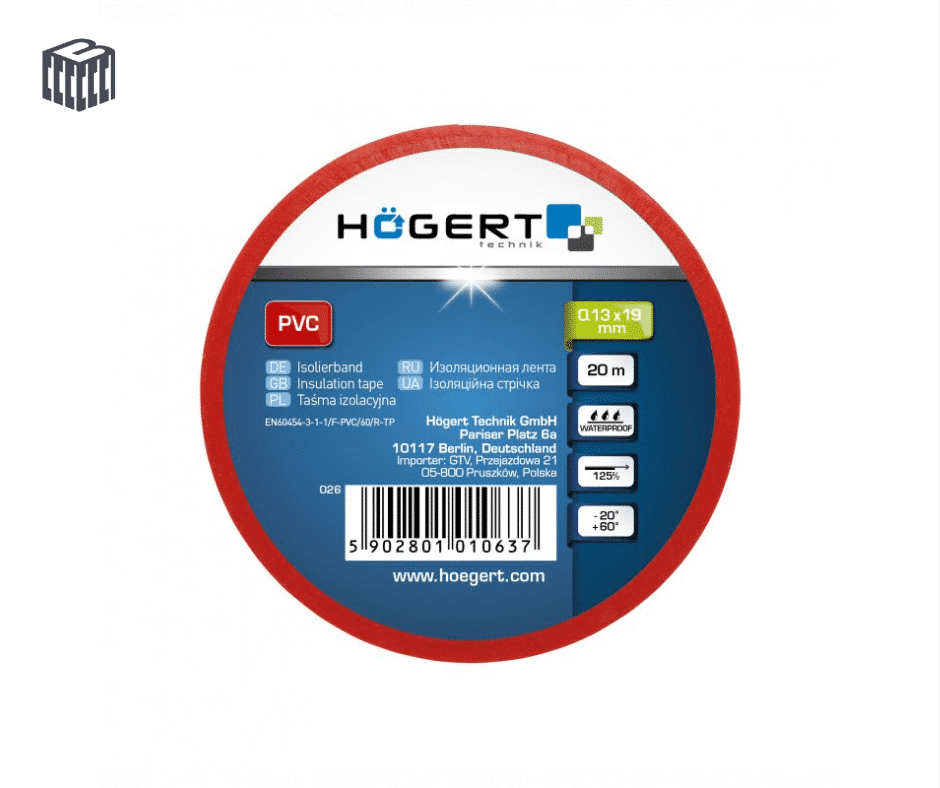 HT1P282 ლენტი საიზოლაციო წითელი Insulation tape 0.13 mm x 19 mm x 20 m, red HÖGERT (10/200)