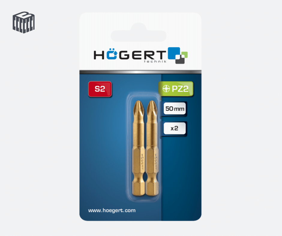HT1S395 Биты отверточные PZ2, 50 мм, сталь S2, титановое покрытие, 2 шт. (блистер) | HÖGERT (10/100)